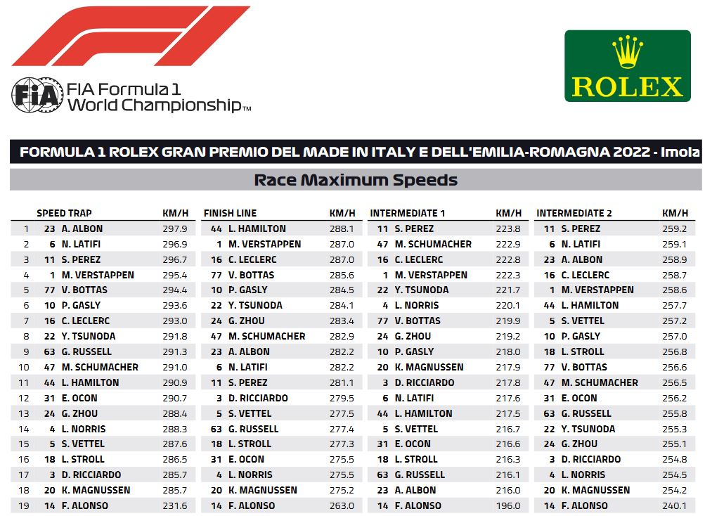ALB was the fastest of all drivers in the speed trap, due to the low DF setup that Williams had to choose for this race but most of all the new rear wing which was the main reason why he couldn`t be overtaken by GAS and HAM.