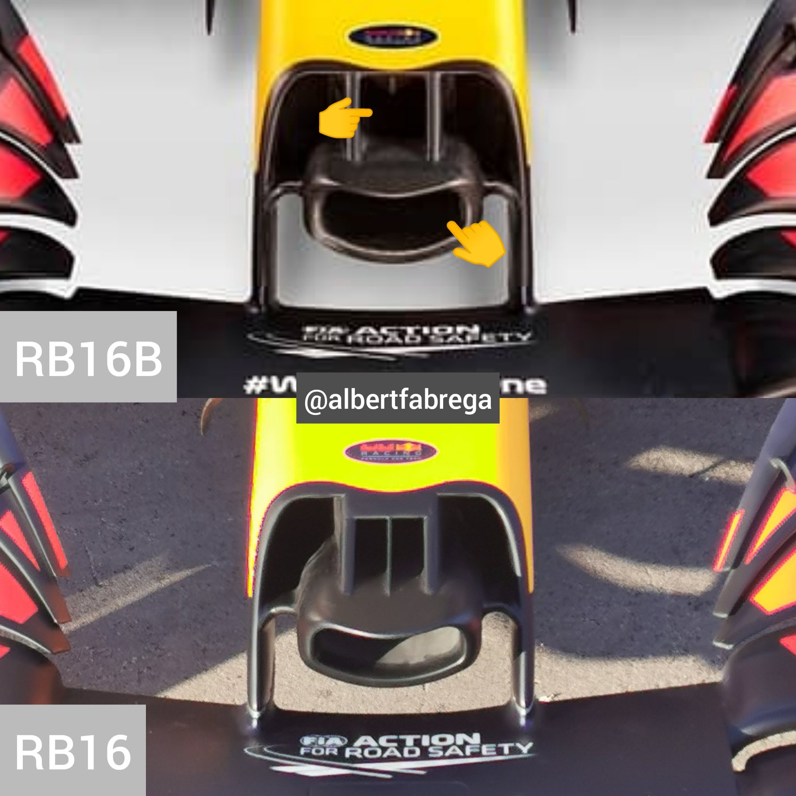 Somewhat curious that Alfa did it's best to have the cape as far forward as possible while RBR is pushing it backwards.