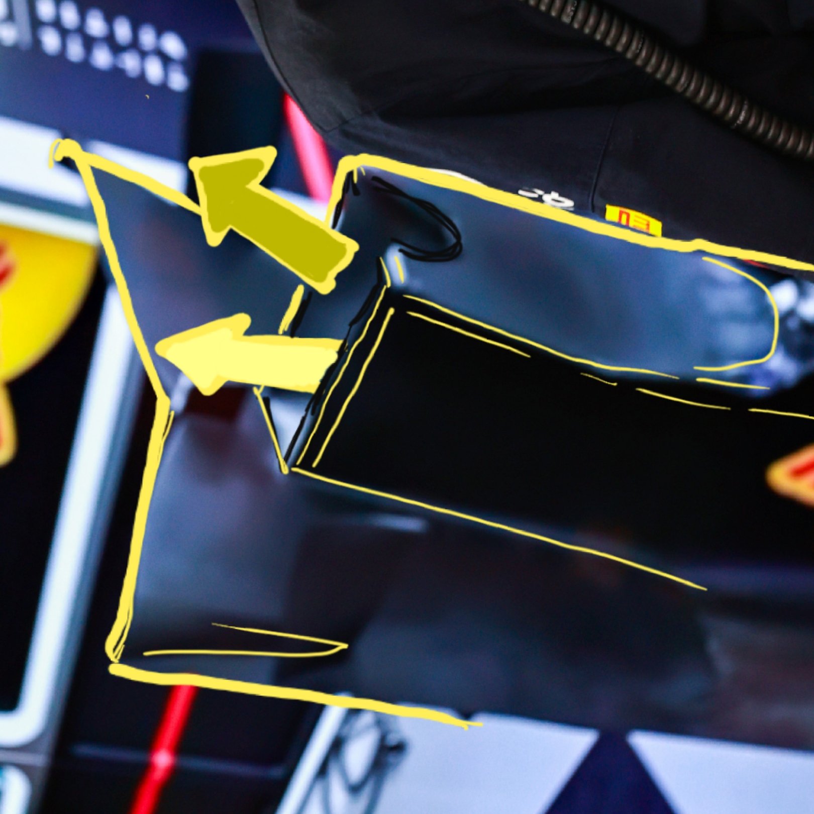 Revised floor for Red Bull with new deflectors ahead of rear wheel