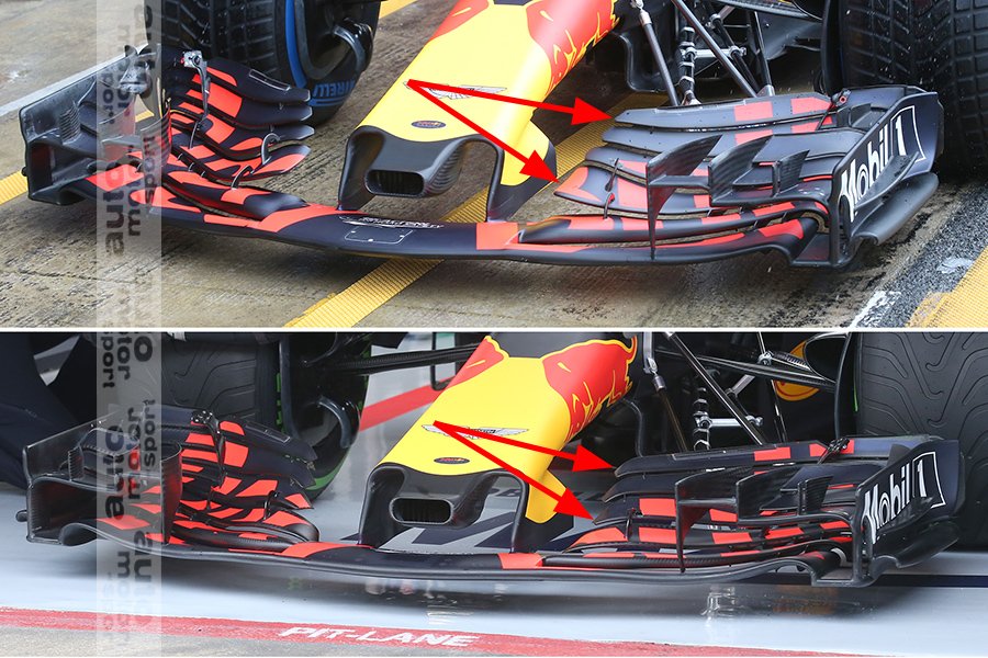 Red Bull testing with different front wing flaps today