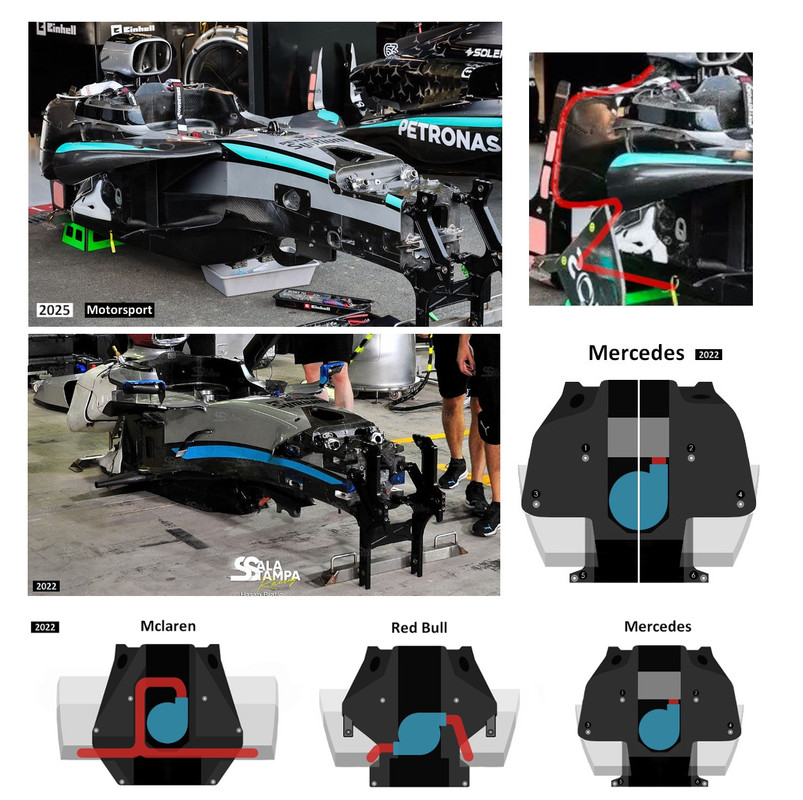 +1 Interesting. Just goes to show how intentionally oversized the sidepods are in this formula. Merc still get the advantage of keeping the HX mass closer to center with those monocoque undercuts, while inflating the sidepods out to the more advantageous areas.
