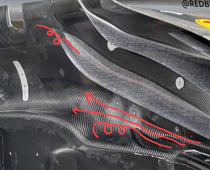 That would probably be considered undesirable flexibility and not sure of what advantage that would bring.Big Tea wrote: ↑21 Mar 2023, 16:34I wondered if there was any degree of flexibility there too. Just at the 'elbow' to absorb kicks.ing. wrote: ↑21 Mar 2023, 15:55One thing that hasn’t been mentioned (I think) is how the RB front suspension, with its highly skewed upper wishbone could be providing very good camber gain characteristics and so front grip. Apart from its aero function the front suspension upper wishbone especially will in effect be quite angled (higher outbound) if you consider that the effective upper link inner pivot is much lower than front upper wishbone fwd leg attachment. AM have similar geometry.